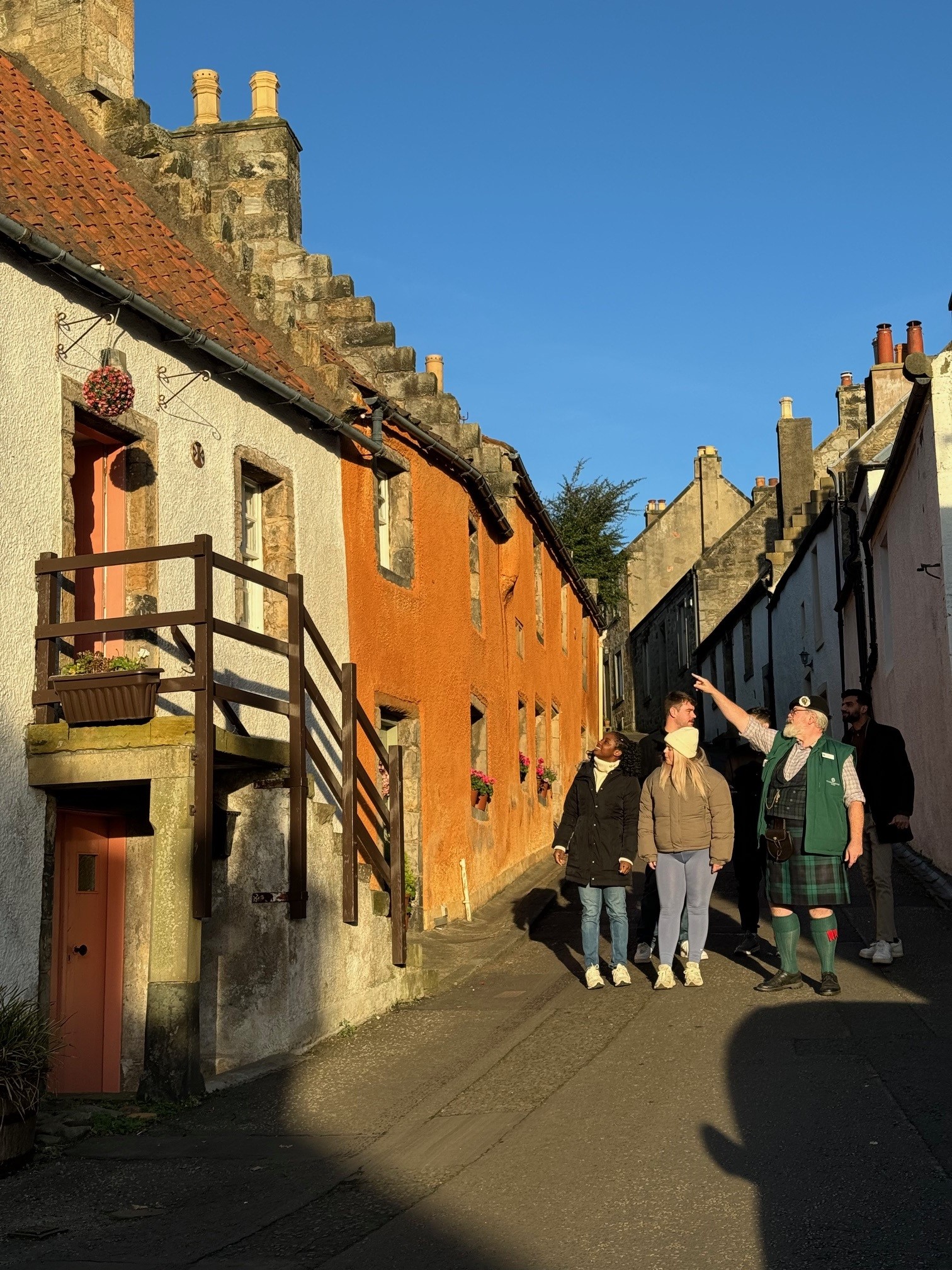 From Linlithgow, we’ll head to Blackness, home to Blackness Castle (optional extra), affectionately known as “the ship that never sailed” due to its triangular shape, which juts out into the Forth. In Outlander, Blackness Castle is used as the set for Fort William, the headquarters of Black Jack Randall. Look down the Forth towards Edinburgh and you will be met with a view of the 3 bridges that span the water.